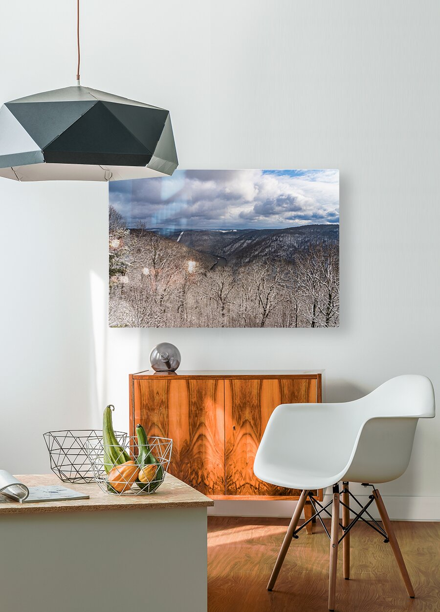 ABOUT THIS ARTWORK: SNOWY CHEAT RIVER CANYON AT COOPERS ROCK ON WINTER AFTERNOON