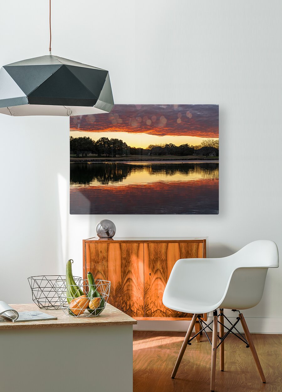 SUR CETTE OEUVRE: DRAMATIC SUNSET OVER LEGACY HILLS PARK LAKE AND GOLF COURSE NEAR