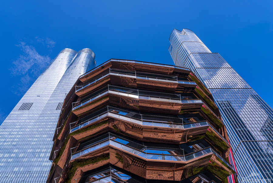 Reflective surface of the Vessel with a skyscraper behind with c Cadre photo