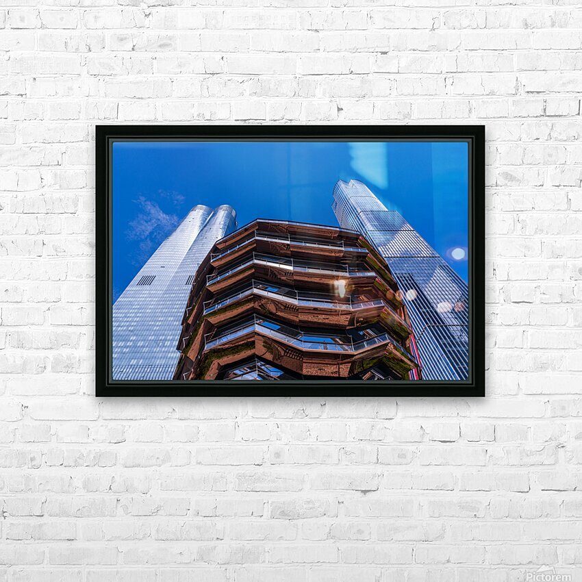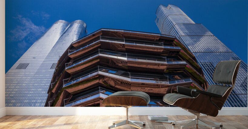 Pour obtenir "Reflective surface of the Vessel with a skyscraper behind with c" dans une impression encadrée.