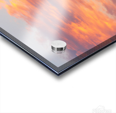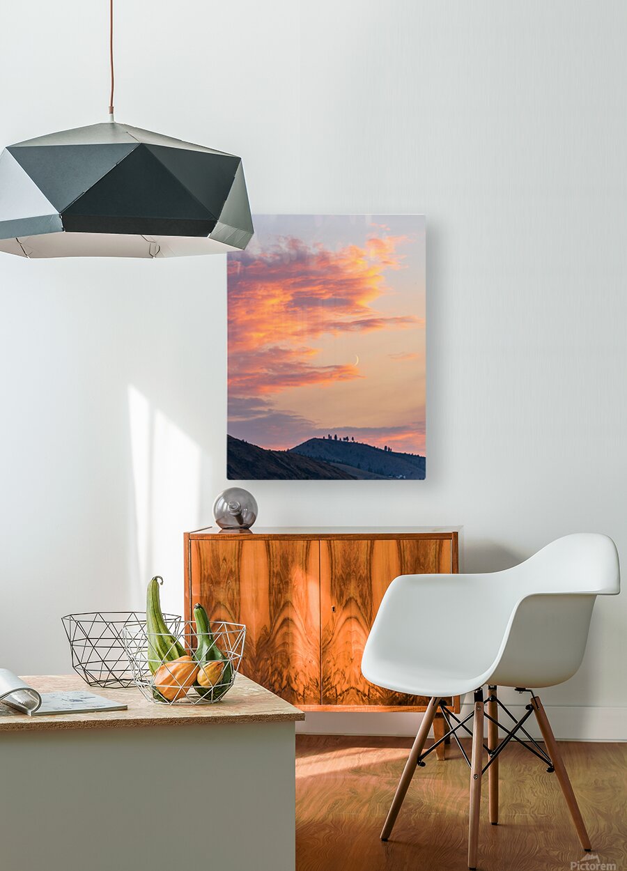 Fiery sunset clouds enveloping the new crescent moon over Lake C Impression sur toile