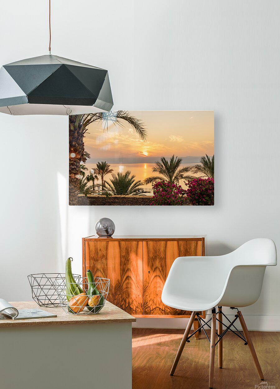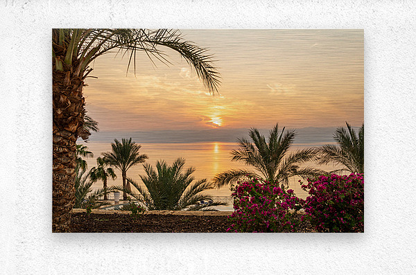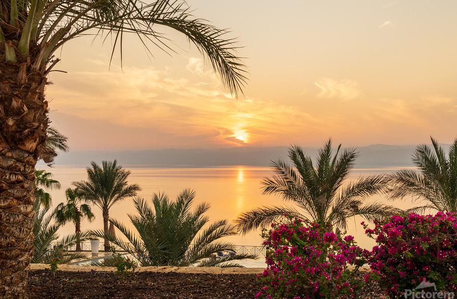 SUR CETTE OEUVRE: SUN SETTING BEHIND THE WEST BANK OF ISRAEL OVER DEAD SEA