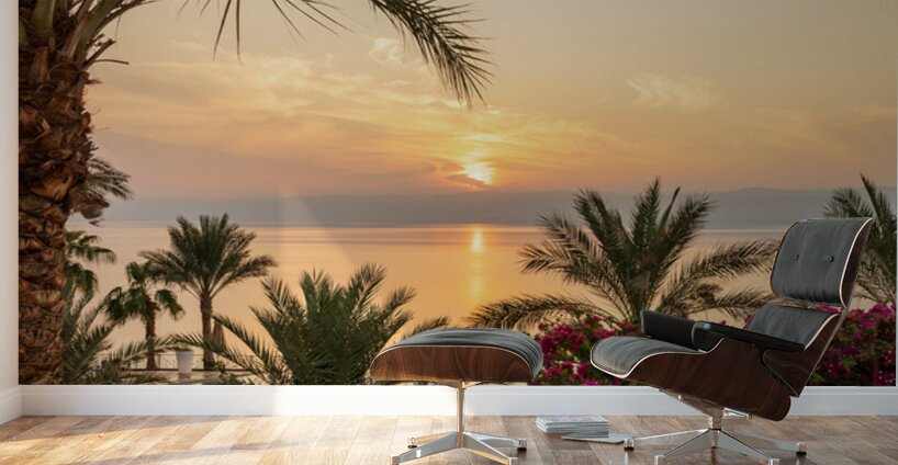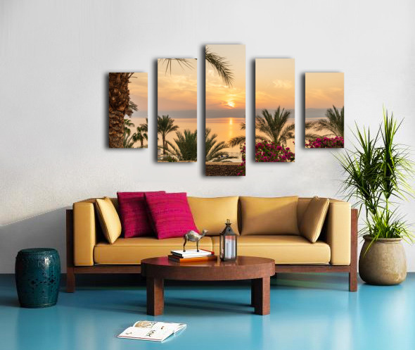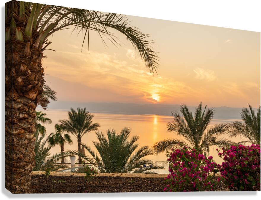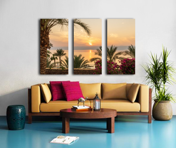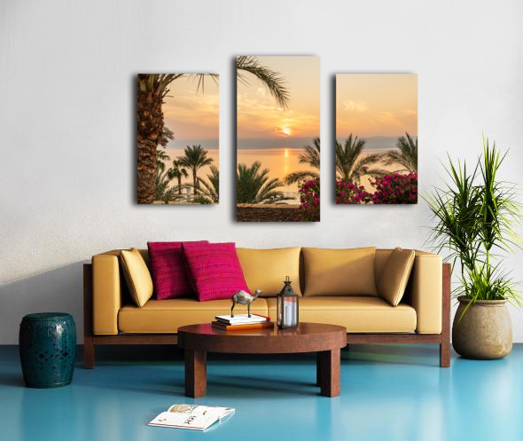Sun setting behind the West Bank of Israel over Dead Sea Impression sur toile