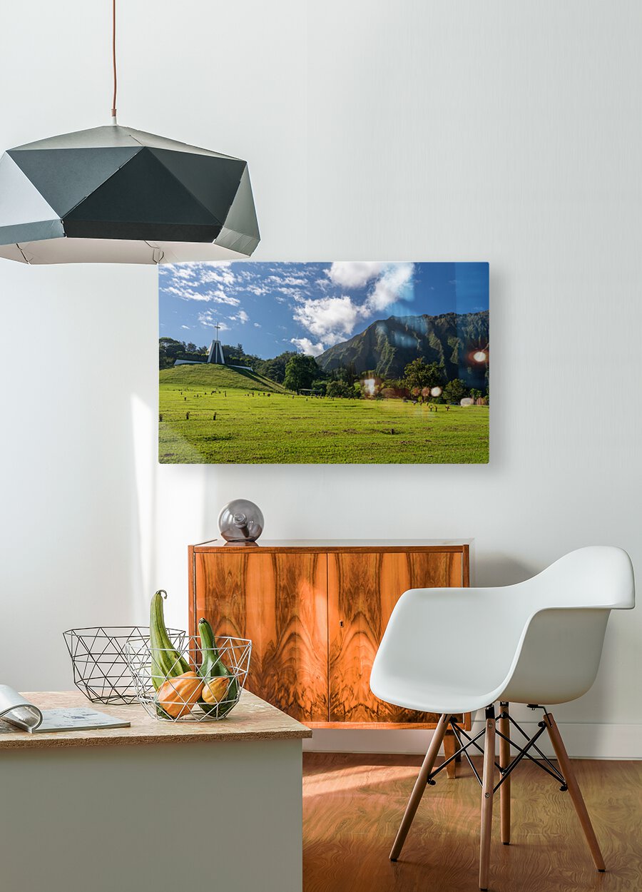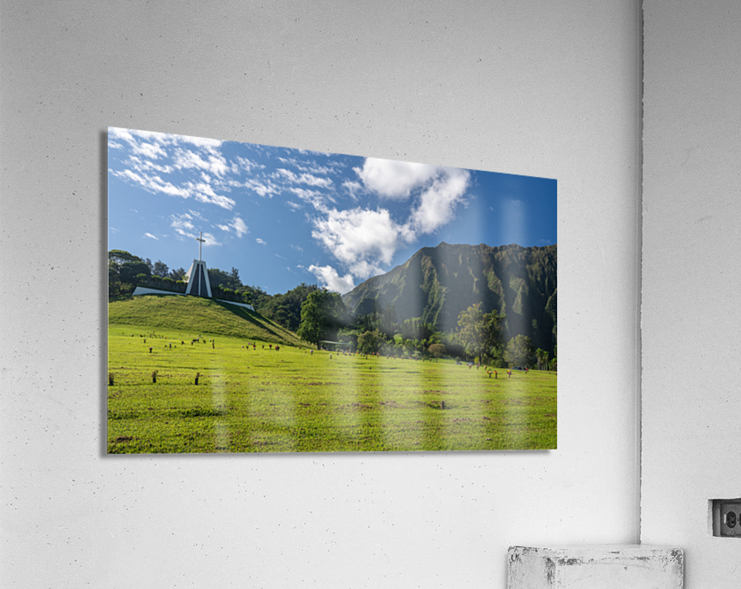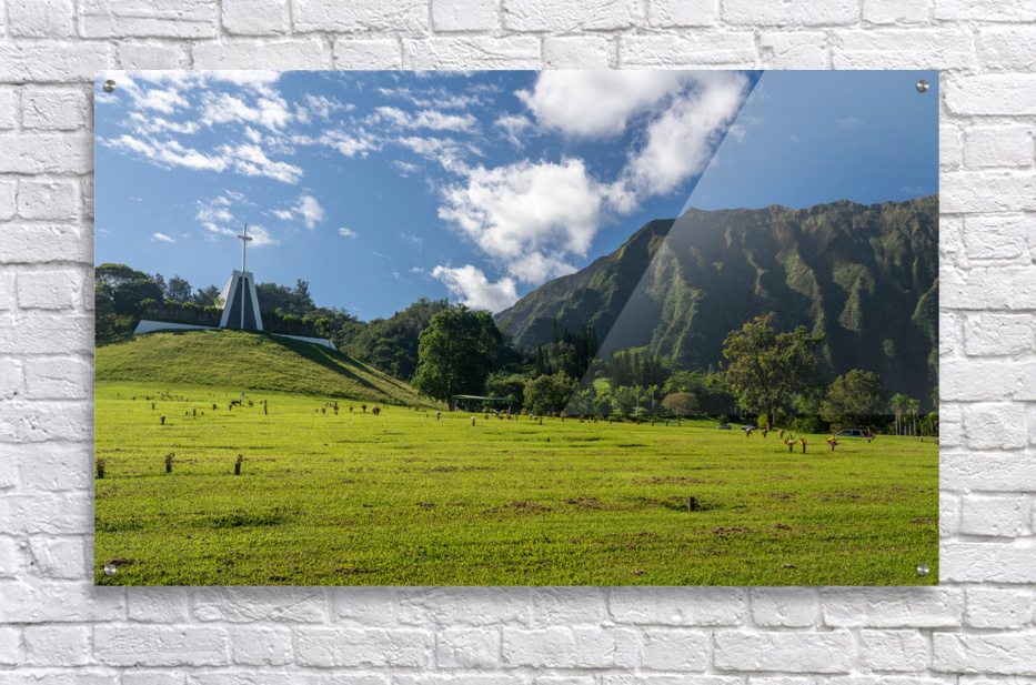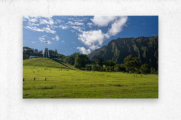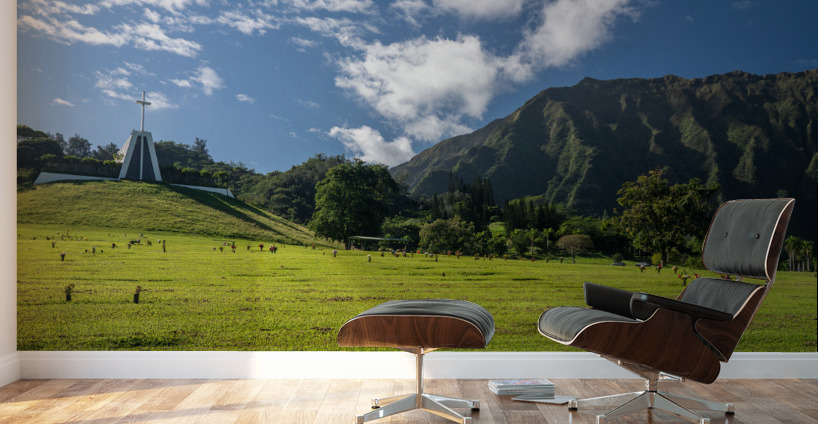 Modern church or chapel in the graveyard of the Valley of the Temples in Oahu, Hawaii
