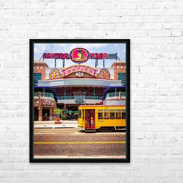 Cinema and old tram streetcar in Ybor City an old historic district in Tampa Florida