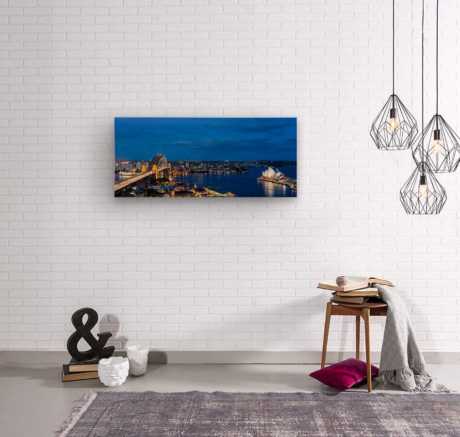 Dramatic panoramic night photo Sydney harbor Impression sur bois