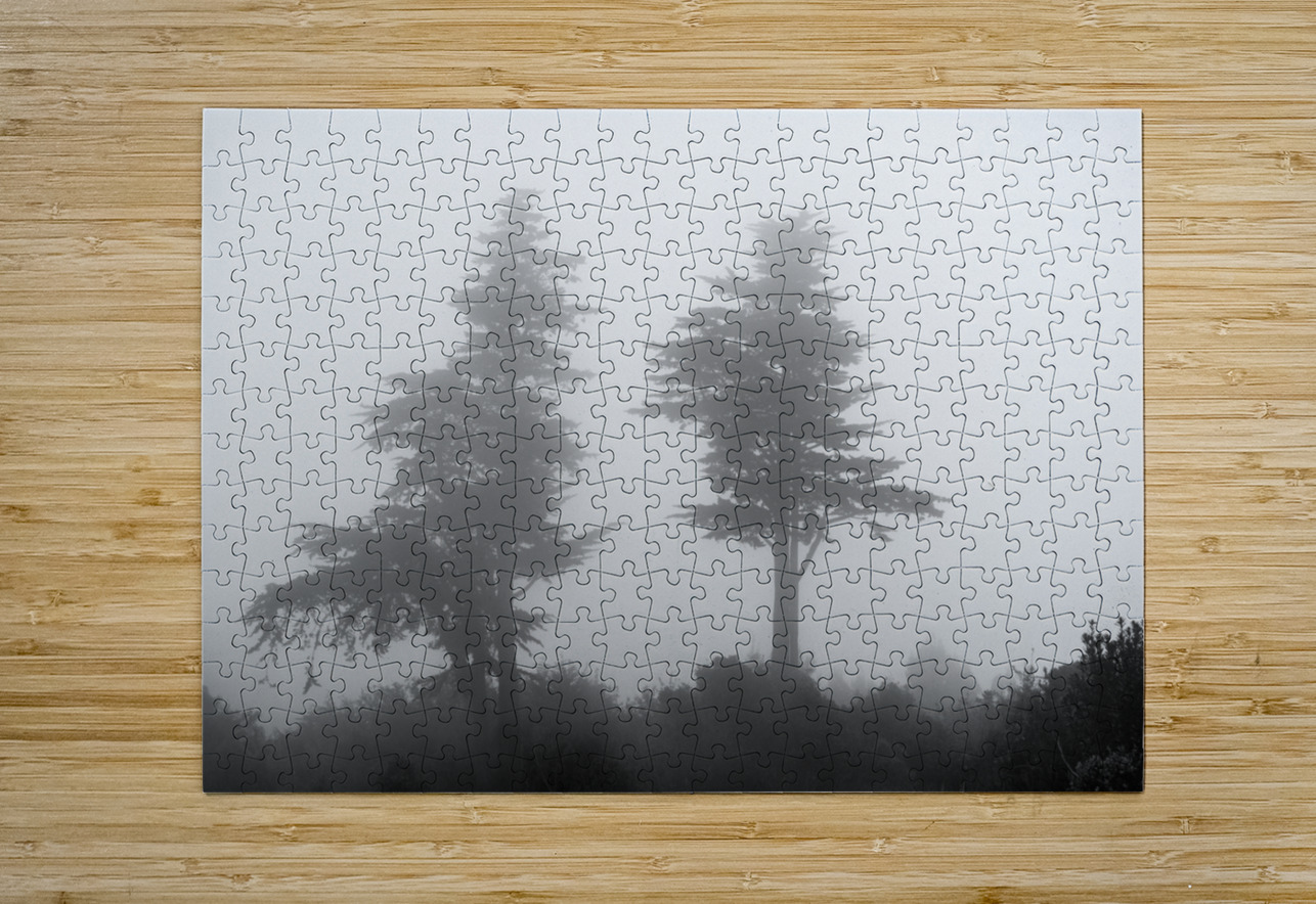 Mist and fog envelop two pine trees Steve Heap Puzzle