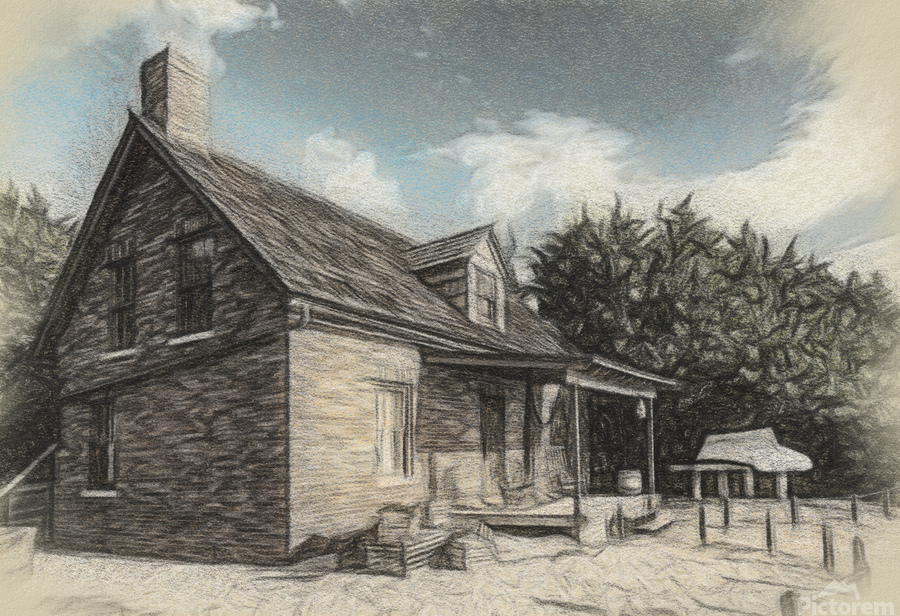 Charcoal drawing of Lighthouse keeper house Bill Baggs Impression du cadre