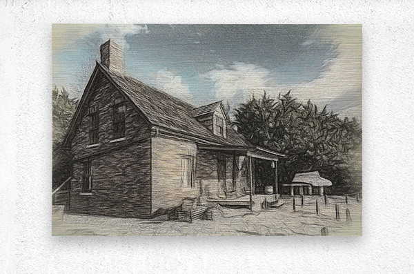 Charcoal drawaing of the brick home of lighthouse keeper at Cape Florida Bill Baggs State Park using digital painting
