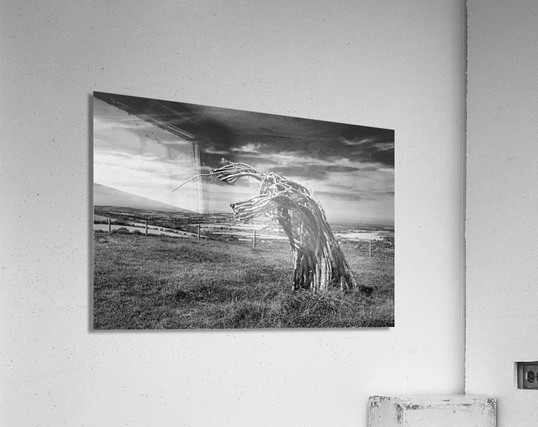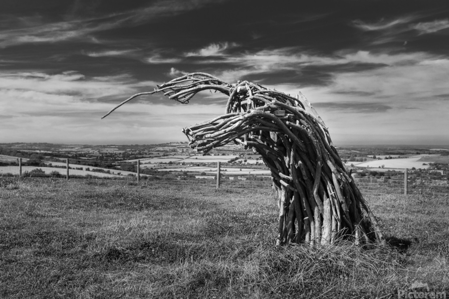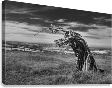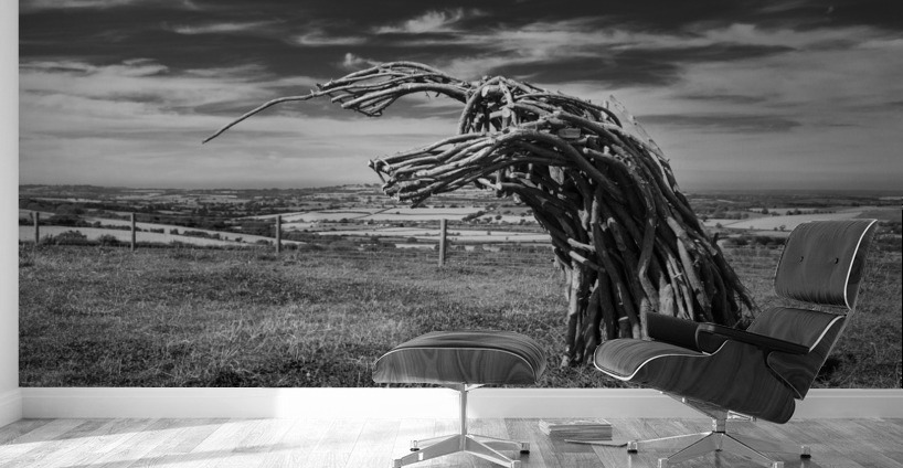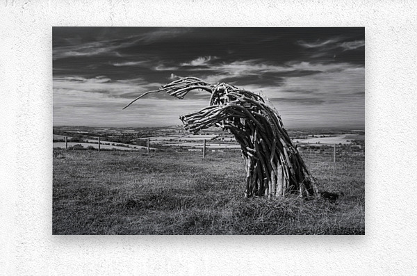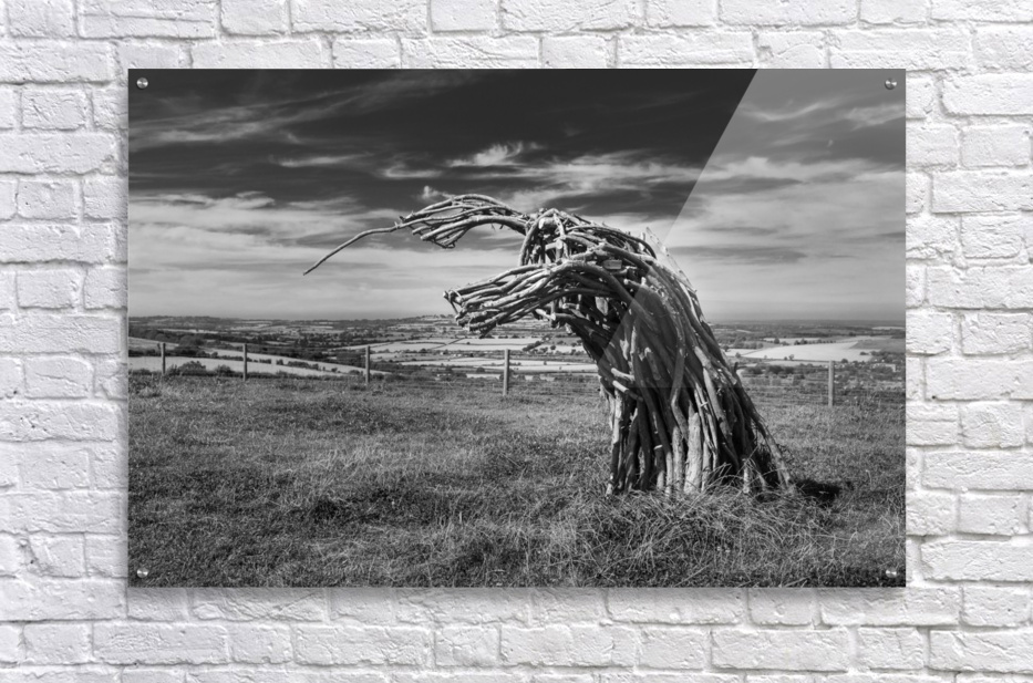 Traditional woven green man made from hedgerow branches and willow twigs in a black and white treatment for added menace!