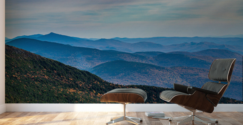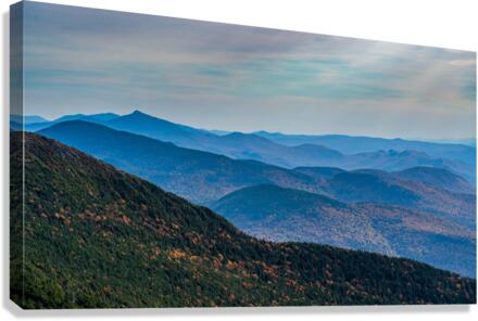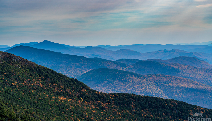 Receding summits of the Green Mountains to Camels Hump in the distance from Mount Mansfield