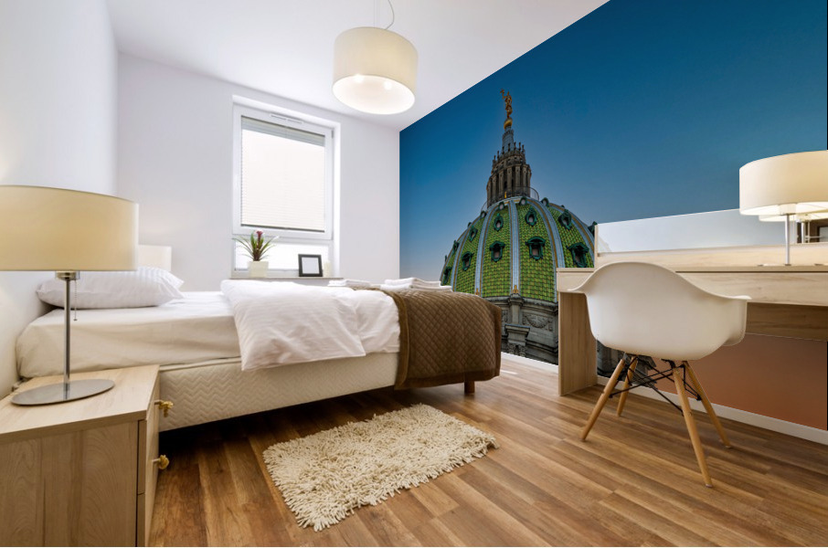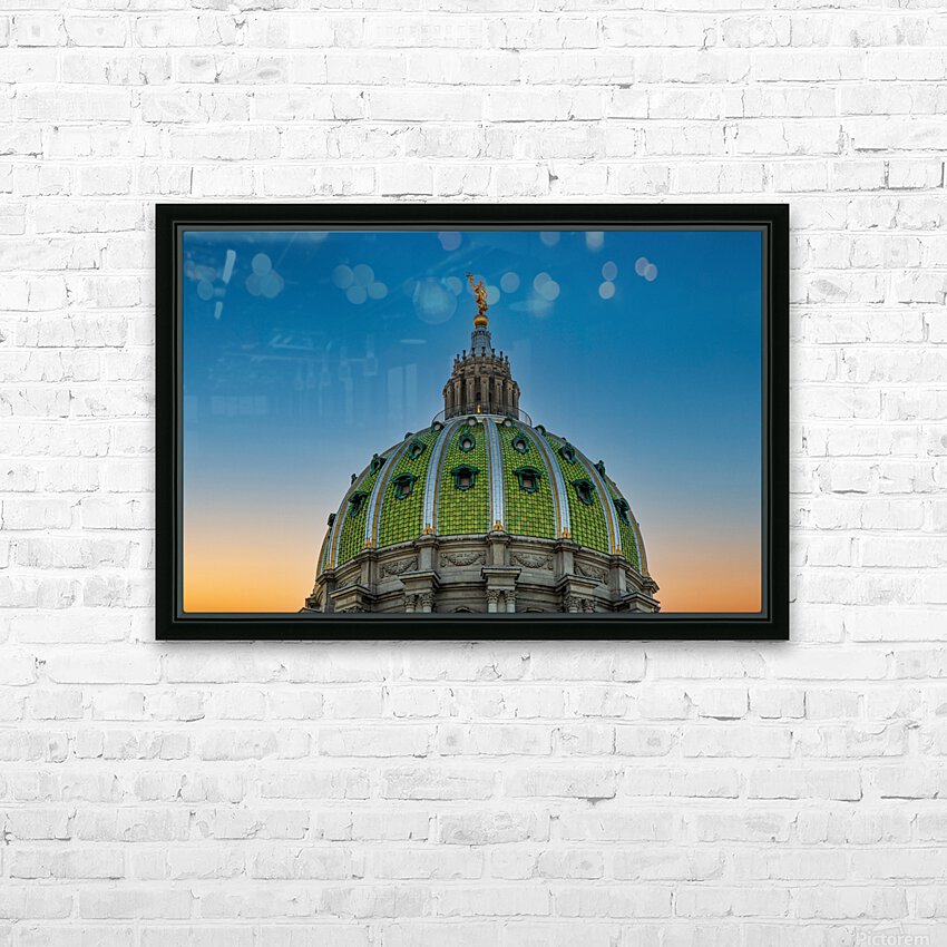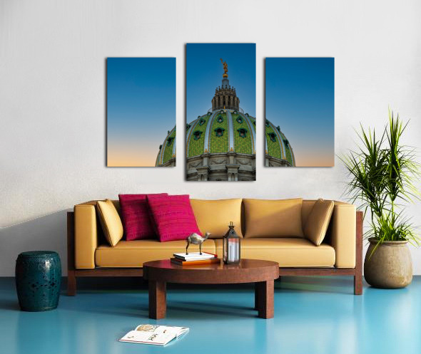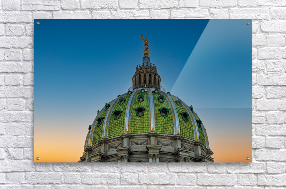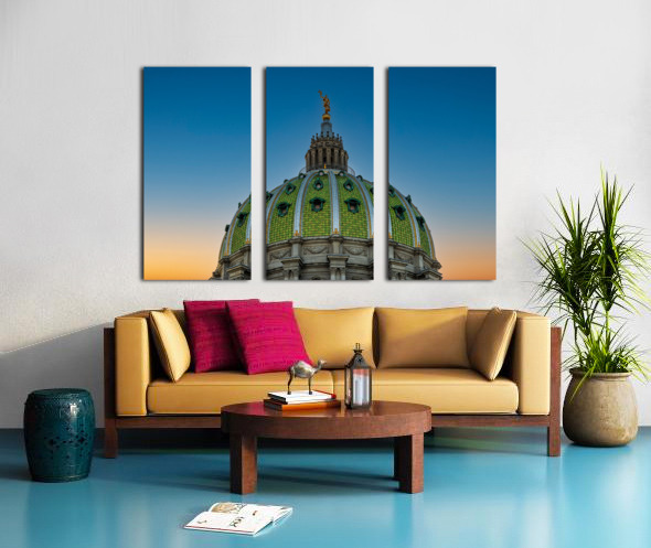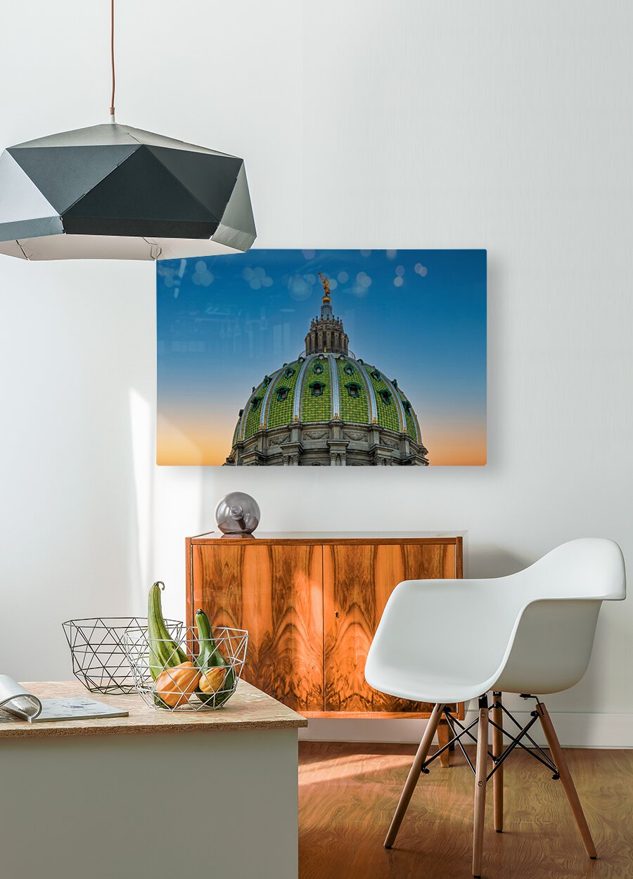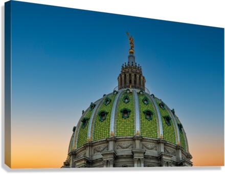 Sun sets behind the ornate dome of Pennyslvania State Capitol Impression sur toile