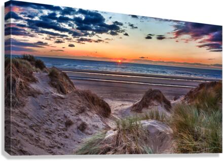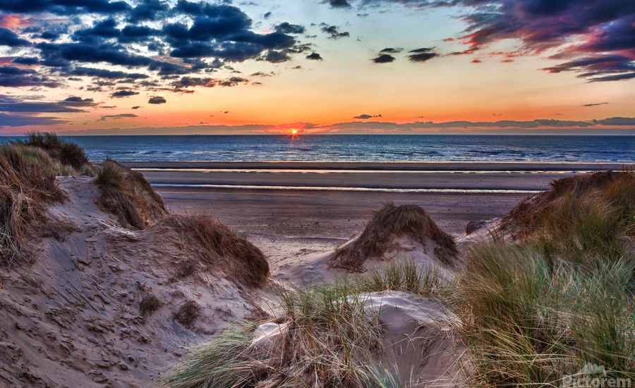 SUR CETTE OEUVRE: SUNSET OVER FORMBY BEACH THROUGH DUNES