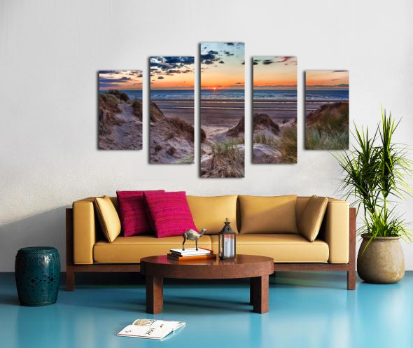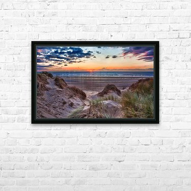 Pour obtenir "Sunset over Formby Beach through dunes" dans une impression encadrée.