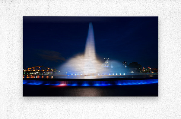 SUR CETTE OEUVRE: POINT STATE PARK FOUNTAIN IN DOWNTOWN PITTSBURGH AT NIGHT