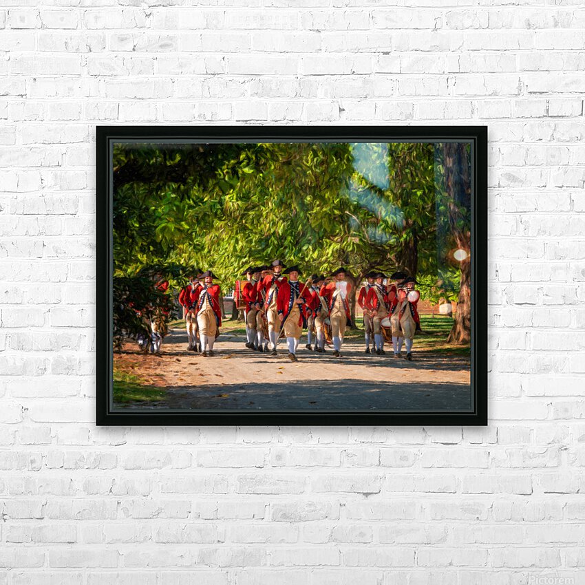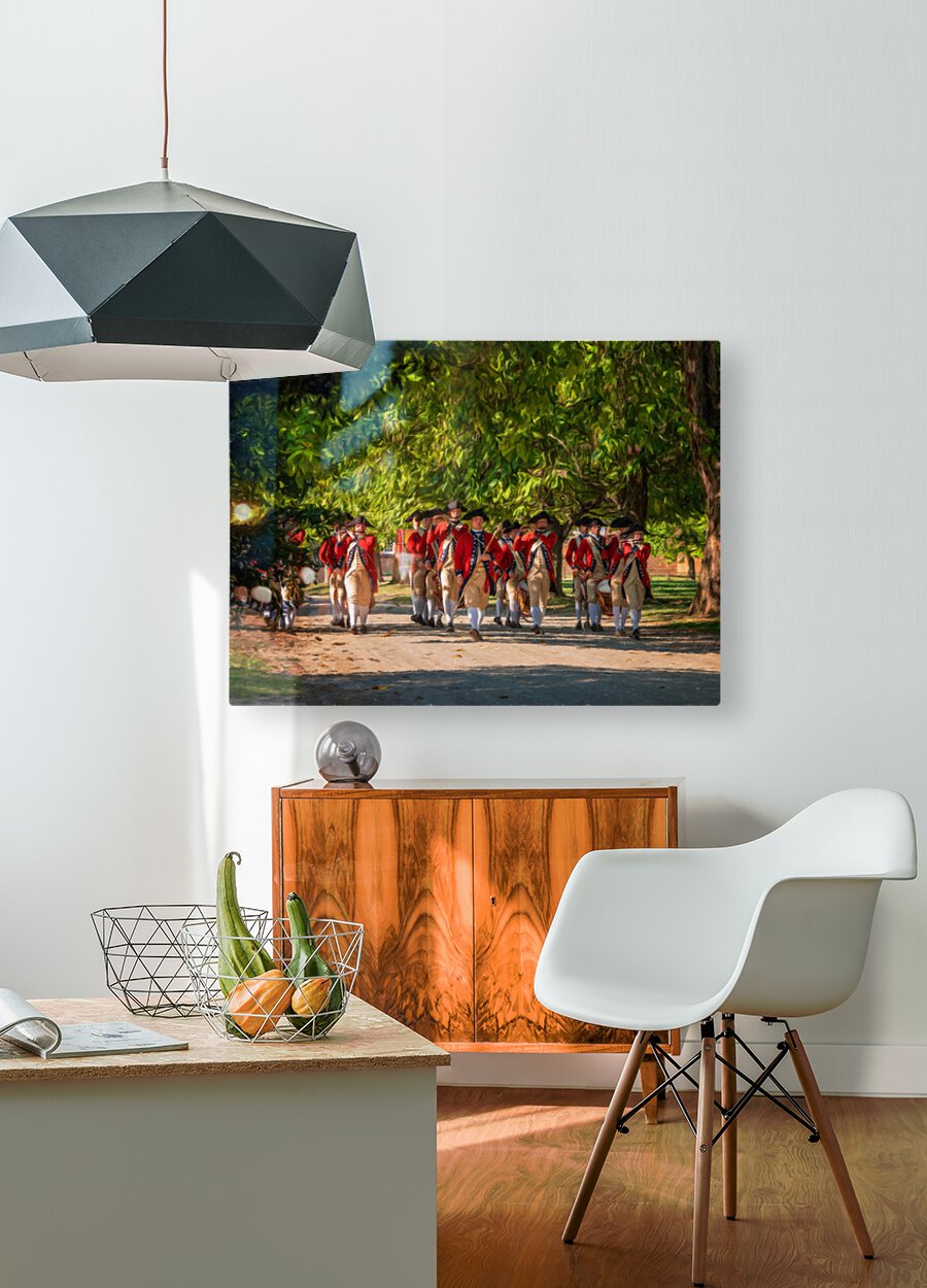Digital oil painting of a British army marching in their red coats along the town streets of Williamsburg. A lovely memento of your visit to Colonial Williamsburg