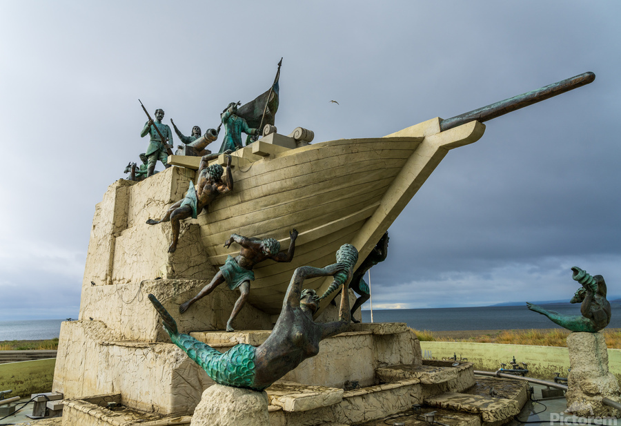 SUR CETTE OEUVRE: MARINERS MONUMENT TO MAGELLAN ON SEAFRONT IN PUNTA ARENAS CHILE