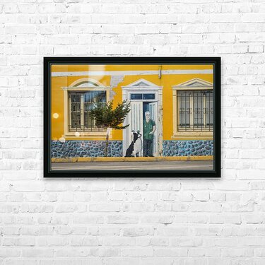 Pour obtenir "Wall mural on building in Punta Arenas in Chile" dans une impression encadrée.