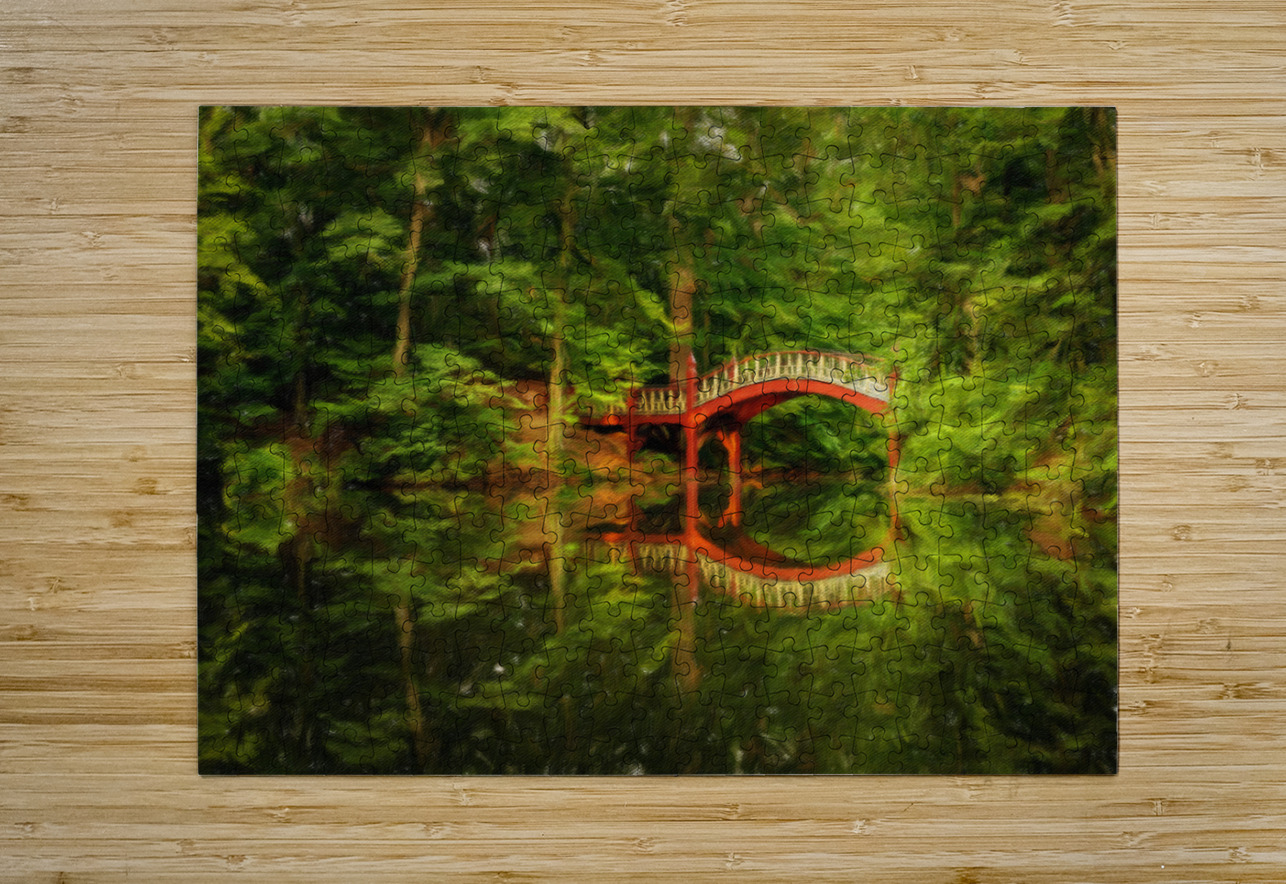 Oil painting of Crim Dell bridge at William and Mary college Steve Heap Impression de puzzle