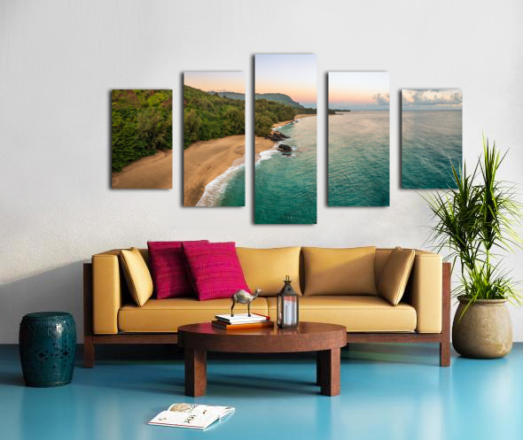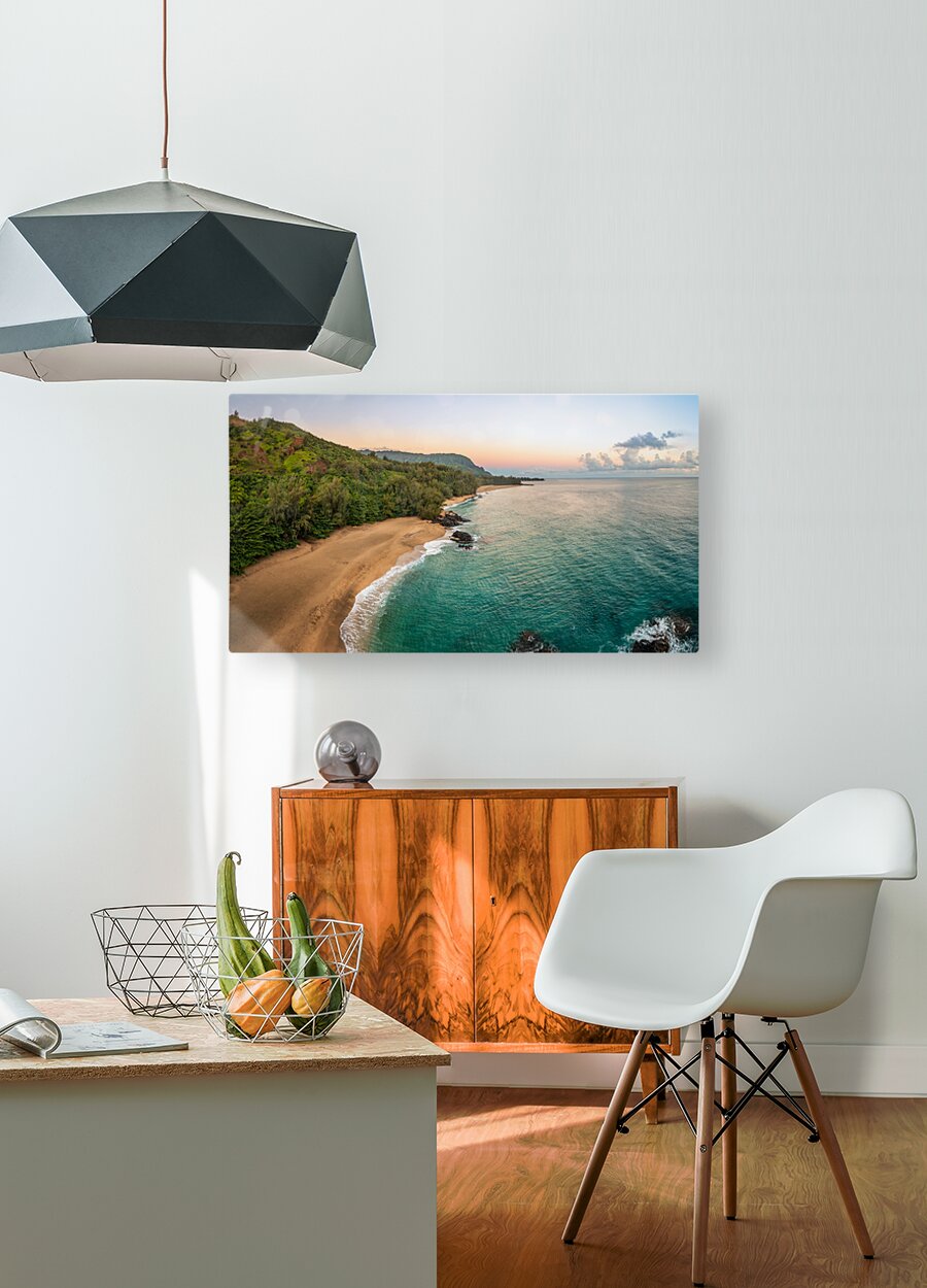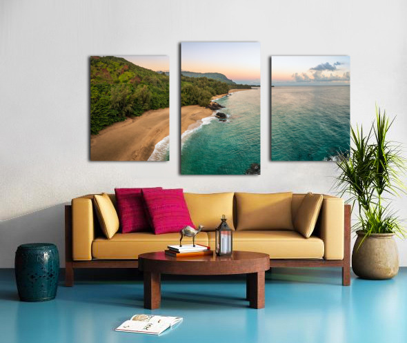 SUR CETTE OEUVRE: AERIAL BEACH VIEW OF LUMAHAI BEACH ON THE NORTH SHORE OF KAUAI